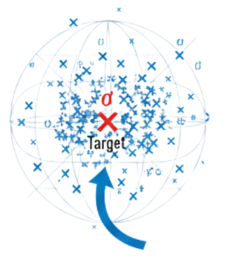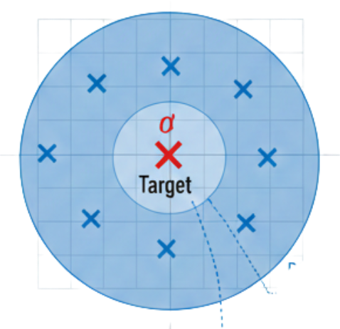 Si estamos tratando de dar en el blanco de una diana, nuestro objetivo será el centro (llamémoslo θ), pero debido al azar (ruido), nuestros flechazos van a caer al rededor de este centro θ.